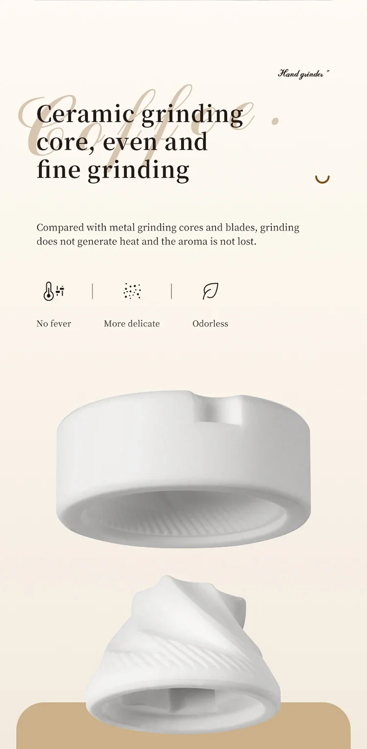 Premium Ceramic Grinding Core: Engineered with a top-grade ceramic grinding core, it offers outstanding durability and efficiently retains the natural flavors and oils of coffee beans, guaranteeing a consistently delicious cup.